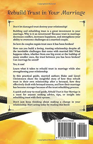 A quick and easy-to-read guide, Rebuild Trust in Your Marriage is a must for anyone seeking advice, tips, or insight into rebuilding trust with their spouse. Don’t just keep thinking about making a change in your relationship. Start acting on change today by reading this book!