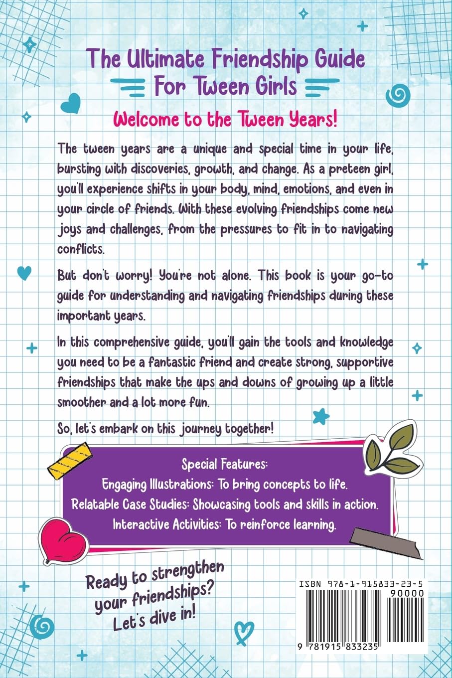 In this book, your tween will learn: What real friendship looks like The different kinds of friends How to make new friends The difference between healthy and unhealthy friendships Tips for managing conflicts and jealousy How to deal with bullying and peer pressure How to manage the digital world of friendships How puberty can impact friendships