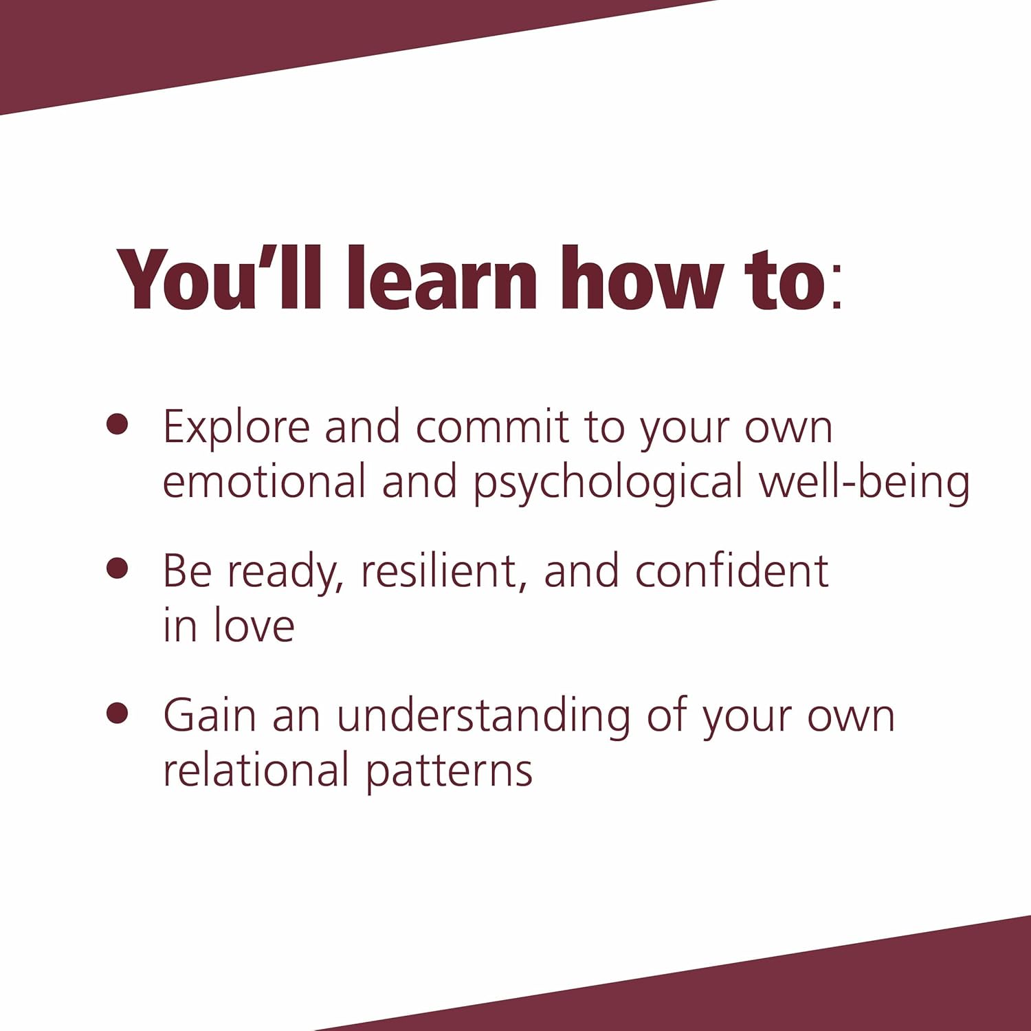 Real love starts with you. In order to attract a life partner and build a healthy intimate relationship, you must first become a good partner to yourself. This book offers twenty invaluable lessons that will help you explore and commit to your own emotional and psychological well-being so you can be ready, resilient, and confident in love.